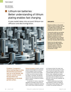 Our work on developing a computational model that reveals new mechanistic insight into lithium plating—a critical failure mode in lithium-ion batteries—has been featured by the Society of Tribologists and Lubrication Engineers (STLE) and The American Society of Mechanical Engineers (ASME).
